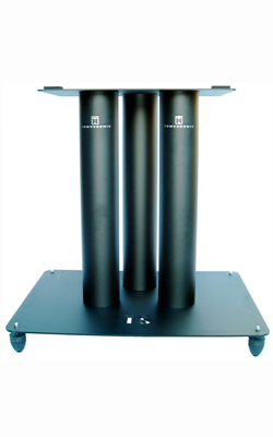 The T-S 4 is a step up from the T-S 3 model, with three telescopic tubes on each stand. This imposing and heavy tower is designed for even larger midfields and medium-sized mains, especially for speakers with a square footprint aspect design or simply whenever the speaker model demands extra stability. Our bespoke service will create an exclusive base plate and/or top plate which will perfectly match your monitor’s 3D-dimensions and weight, making the T-S 4’s the perfect solution for today’s compact but technically sophisticated professional recording studios.